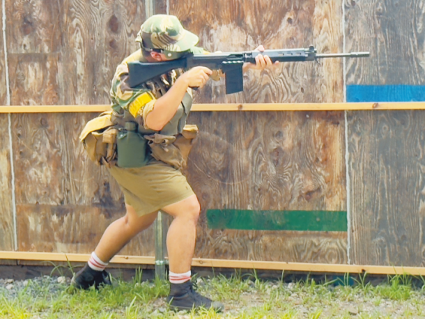 ローデシア傭兵をイメージしたと語る参加者の手にはFALが握られている。通常のサバゲではなかなか使えない銃が今日は使える、と意気込んでおり積極的に敵と交戦。装備と銃を合わせるあたりが非常にセンスを感じる