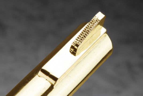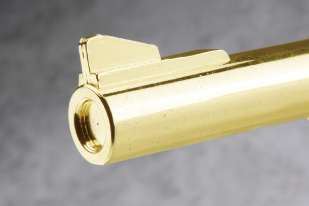 ※拳銃型の金属製モデルガンは、1971年の第一次モデルガン法規制(改正銃刀法)以降に販売されためっきモデルであっても、経年変化等によって金色が取れると銀色と判断されて規制の対象となることがあります。その場合は黄色や白、または金色の塗料を塗るなどの処置が必要です。