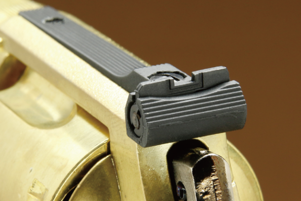 続く第3弾が金属製モデルガンのニューモデル・スーパーブラックホーク44マグナムだった。当時は資料も少なく、実銃の取材もままならなかったが、トリガーを引かない限りファイアリングピンが飛び出さない安全機構のトランスファー・バーや、ローディングゲートをオープンするだけでシリンダーのロックが解除される機構が正確に再現されていた。しかもカスタムモデル並みのタイトな製造公差で作り上げられ、仕上げもピカピカで美しく、それまでで最高の金めっきモデルだった。そして人気の10インチロングバレルもラインアップに加えると、他社とほとんど変わらない価格で発売した。