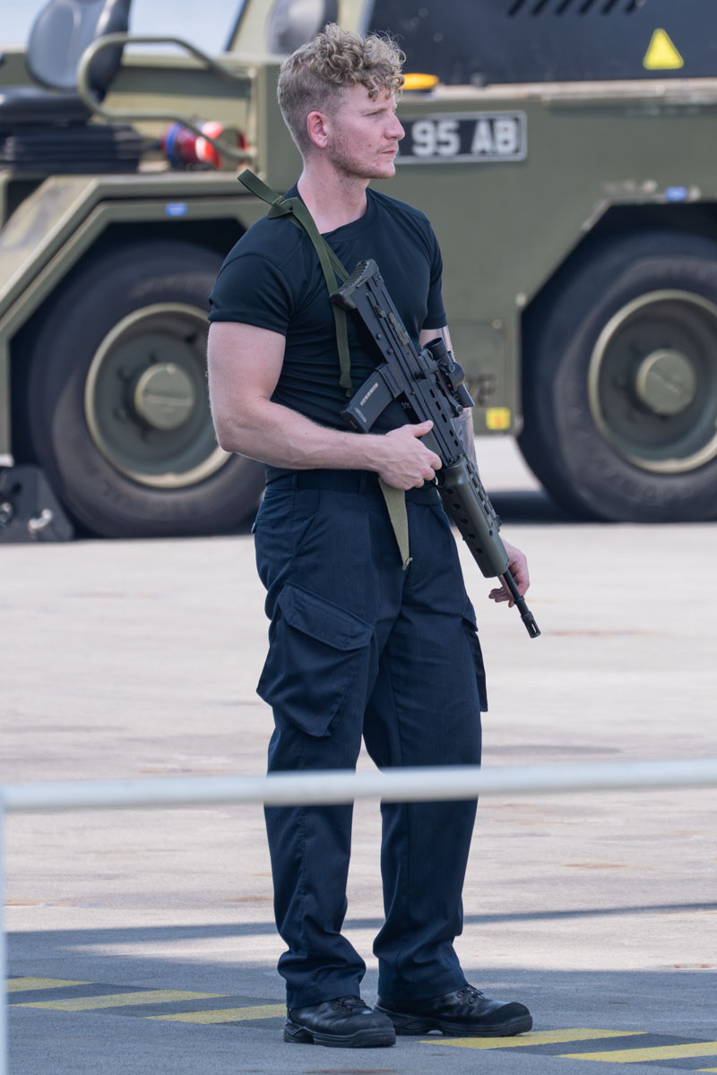 搭載機数は資料によって諸説あるが、英国海軍公式では最大36機のF-35Bと英国軍のヘリコプター含み最大72機搭載することが可能だ。今回のCSG25ではF-35Bが18機(後半24機に増強)、HMA2とHM2/HC4が合わせて16機搭載されている。他にもT150重量物輸送ドローンとRQ-20監視UAVを搭載する。演習で海上自衛隊の『かが』に着艦した英国のF-35BもこのPWLSに搭載された機体だ。