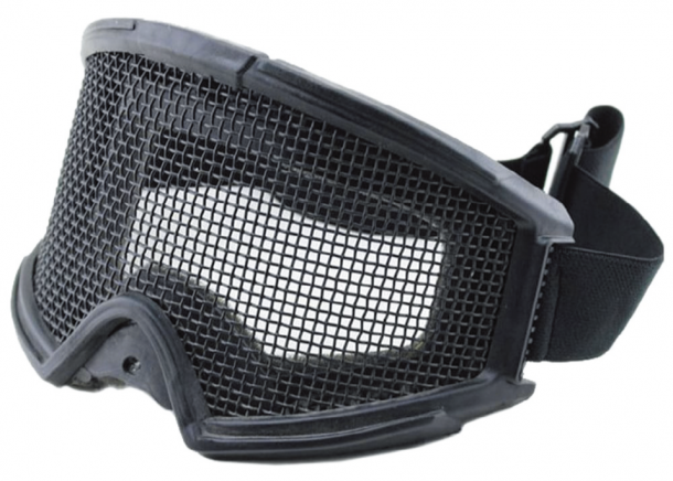 BB弾から目を守ることに特化した一体型のメッシュゴーグル。メッシュタイプは砂ぼこりや細い枝などの防護には弱いが、レンズを使わないので視界が曇る心配がない。