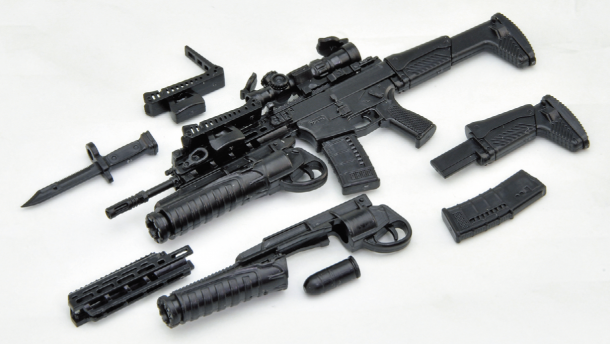 陸上自衛隊武器学校の取材協力により、20式小銃を1/12スケールで詳細に再現。実物に即したパーツ分割で構成されており、グレネードランチャーの状態なども選べて様々なシチュエーションが演出できる。
