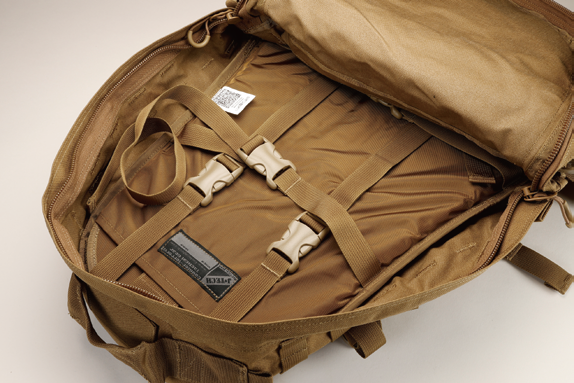 容量12.7リットルの1DAYサイズながら3つのコンパートメントと豊富なインナーポケットから見た目以上の収納力を誇るバックパック。コンプレッションベルト、ウエストベルト、フロントと両サイド上部にMOLLEストラップが配置されている。