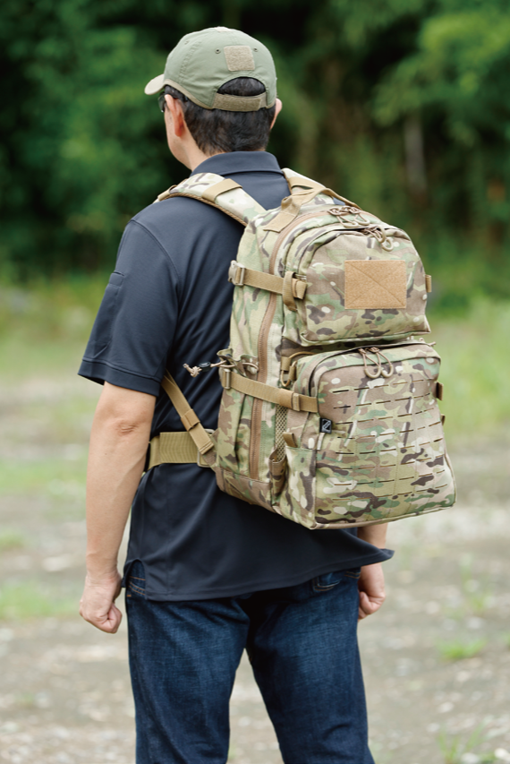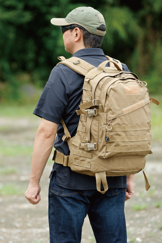 アメリカ軍のA3パックをJ-TECH流にアレンジ。素材に高強度の1,000デニールナイロンを使用し、容量は34.9リットルの大容量。フロントポケットにはA3パックを象徴するジッパーポケットが備わっている。