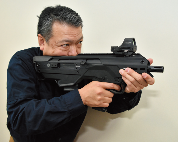 筆者近影神崎 大:Masaru Kanzaki 今回、GROTを射撃したが、構えやすさや反動の素直さ、そして高い命中精度を実感した。各部が人間工学的によく錬られている点も好印象だった。 |