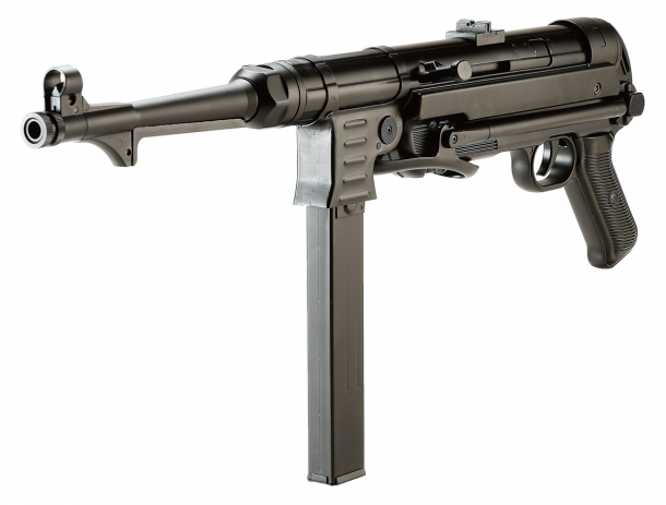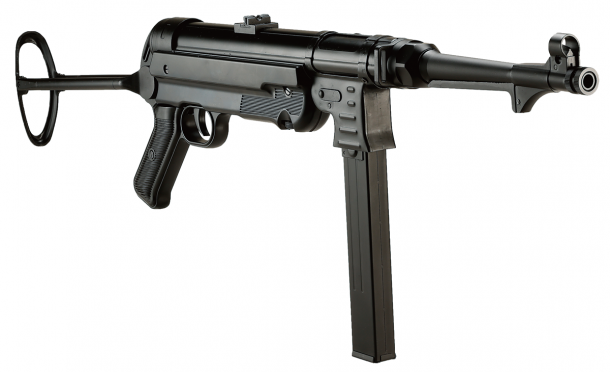 MP40は1938年に製造されたスチールプレスレシーバーを用いた短機関銃である。オープンボルト式、プレス製のレシーバーやマガジンハウジング、テレスコピック式のリコイルスプリングバッファー、フォールディングストック、寒冷地での使用を想定して、ベークライト製のグリップパネルとレシーバーカバーが採用されている。