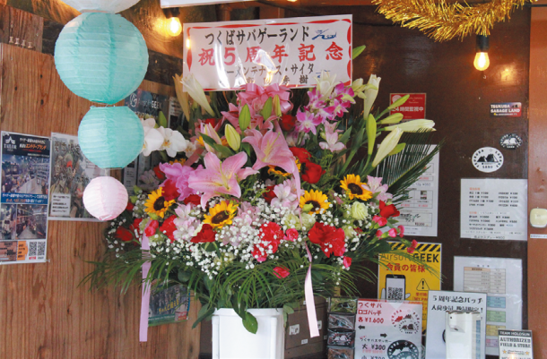 5周年記念してフィールドに贈られた祝い花。当日のお祭り気分のイベントを華やかに彩っていた