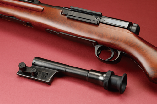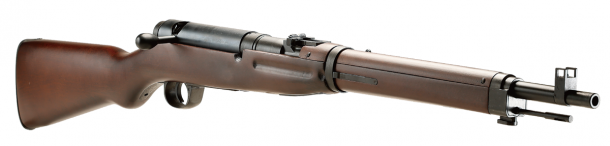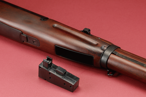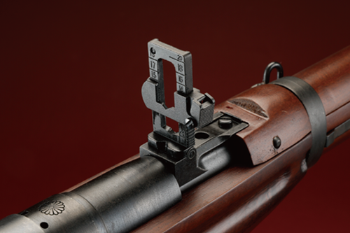 S&Tの三八式騎兵銃はバリエーションの中でも奉天工廠(南満陸軍造兵廠)にて製造された中期型をチョイス。中期型の特徴であるガード付きフロントサイト、短くなった射程距離に合わせて小型化されたリアサイト、合わせ銃床、乗馬時に背負いやすいように左側に移設されたスリングスイベルなど忠実に再現。全長が1,276mmもある三八式歩兵銃に比べて、972mmまで全長が短縮化された三八式騎兵銃は取り回しやすくなっている。