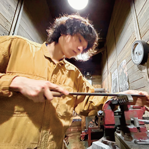 「ISZナイフ」で知られる作家。ナイフを作り始めたのはわずか5年ほど前。恐ろしい勢いで進化を続けている。「丈夫で使いやすいナイフを」という明確なコンセプトのもと、鋼材を用途に合わせて使い分けながら、実用性の高いナイフを作り出す。