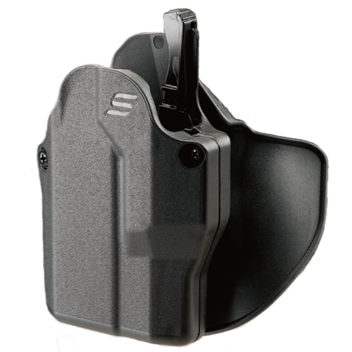 数多くの法執行機関向けホルスターを生み出してきたサファリランドの最新モデル。ホルスター本体のコンポーネントを一新することで軽量かつ高い耐久性を実現。新たにトリガーを保護するイングレスガードが採用されている。ドットサイト、ウェポンマウントライト対応。RDSオプティックリッド、UBLベルトマウントが標準装備されている。