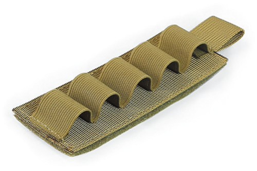 裏面がベルクロフックになっているショットシェルホルダー。プレートキャリアやプラカードに貼ったり、付属のベルクロループ面テープでストックに貼ることもできる。