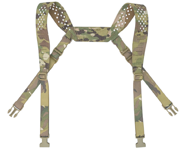 進化を続けるVTGのハーネス最新版。スコードロン素材にレーザーカットで通気孔やMOLLEスリットを施し、立体裁断で体にフィットするデザインに仕立てている。