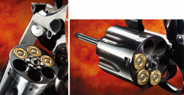 これに使用する44マグナム弾は、著名な銃器研究家であり、牧場主でハンター、そして作家でもあったElmer Merrifield Keith(エルマー・キース:1899-1984)が、既存の44スペシャル弾を強化した新型カートリッジをS&Wとレミントンに提案し、これを受けて両社が開発したものだ。当時において、これが世界最強のリボルバーカートリッジとなっている。