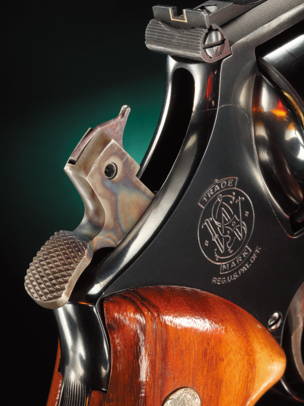 1955年12月、S&Wは同社の最大サイズ(当時)であったNフレームから44マグナムを発射する大型DA(ダブルアクション)リボルバーを完成させ、翌年から販売を開始した。