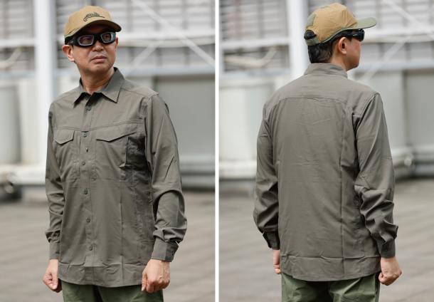 軽量で吸汗速乾性に優れたポリエステル100%生地を使用したアーバンテイストなタクティカルシャツ。両脇にはメッシュ素材を使用。フラップ付き胸ポケットやジッパー付き胸ポケット、眼鏡用ループなどディフェンダーシリーズの特徴が継承されている。