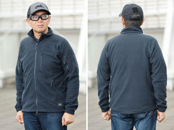格子状に編み込まれたフリース素材を使ったフリースジャケット。コンパクトに折り畳むことができ、軽量・薄手なので秋から初冬にかけてはアウターとして、冬はジャケットの下に羽織るインナーとしても活用できる。