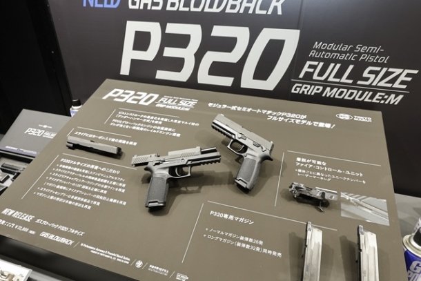 2025年10月9日に発売されたばかりのガスブローバックガンの新製品P320フルサイズ。特徴的なディテールの再現はもちろん、多数の別体パーツやアンビコントロールレバー、実銃同様にFCU(ファイアコントロールユニット)が着脱できるなど、今までになくリアリティにこだわった1挺である。もちろん最新モデルらしく作動性能も申し分ない。価格は¥25,080
