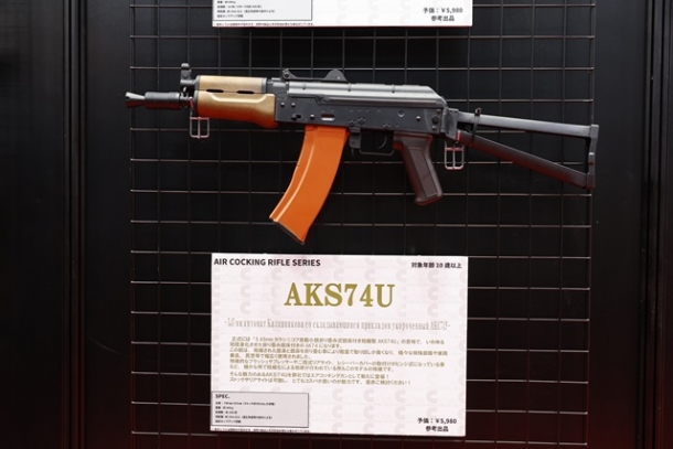 AK74のマイクロカービンモデルとして有名なAKS74U、通称クリンコフが対象年齢10歳以上のエアコッキングガンとして発売される。ハンドガードやグリップは実銃の素材の違いに応じてカラーリングが変えられており、トライアングルタイプのフォールディングストックやリアサイトは実銃同様に可動する。予価¥5,980、参考出品