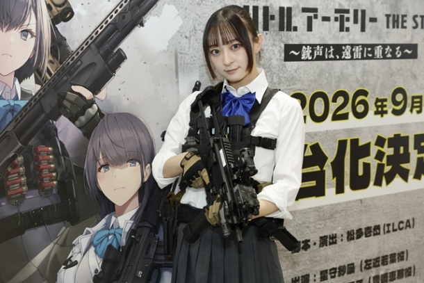 リトルアーモリーがついに舞台化されることが決定した。開演予定は2026年9月、脚本・演出は松多壱岱(ILCA)さん、出演は左近若菜役に星守紗凪さん、豊崎恵那役に東城咲耶子さんが選ばれている。会場には左近役の星守さんが登場してブースを盛り上げていた