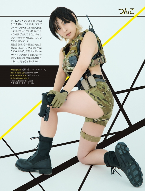 アームズマガジン通巻450号記念の表紙は、DJ、声優、コスプレイヤー、モデルなど幅広く活躍しているつんこさん。映画、アニメから飛び出してきたようなセクシーでタクティカルなスタリングでキメてもらった!