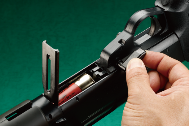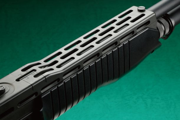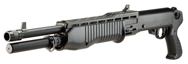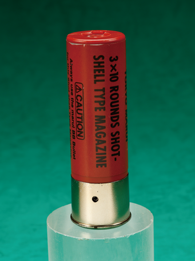 BB弾はショットシェル型マガジンに30発装填できる。デメリットといえばスプリングのテンションが強く、ストックレスのピストルグリップのせいもあってコッキングしにくく力を要することだ。エアショットガンシリーズはSPAS12とM3スーパー90、M3ショーティーの3挺のみだが、独創的なメカニズムと実射性能の高さから発売から25年近く経った今なお人気は衰えない。