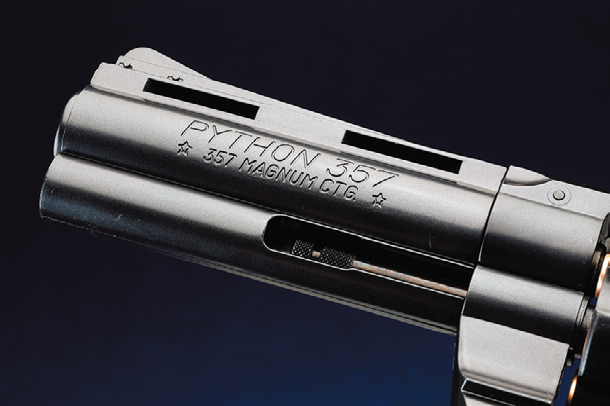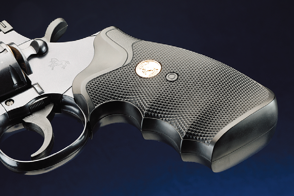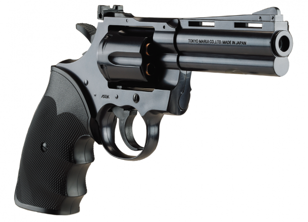コルトパイソンはコルトが開発したダブルアクションリボルバーである。モデル名のパイソンは英語でニシキヘビを意味しており、当時の副社長がネーミングしたという逸話が残っている。.357マグナム弾を6発装填できる。バレル上部にはベンチレーテッドリブが設けられている。実銃では発射時の燃焼ガスによって高温になったバレルから発せられる陽炎を防止するためのもので、視認性をよくするためであると言われている。