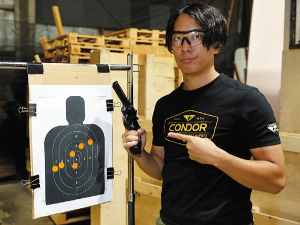 実銃ではダブルアクションでの射撃も可能だが、このモデルは誰でも手軽に楽しめるエアコッキング式を採用したためシングルアクションオンリーとなっている。しかし、ライブカート式でリアルなローディングアクションができるだけでも私たちの所有欲は充分満たされるし、何時間でもこの動作だけで遊べてしまう。実射性能も東京マルイ製であるため折り紙つきであり、狙ったとおりの集弾性を発揮してくれる。
