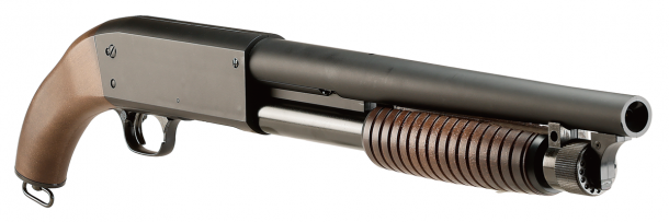 発射弾数が1発もしくは2発にセレクトできるユニークなメカ、カセット型マガジンを採用するなどエアガンとしても合理的な設計がなされており、可変ホップアップの導入など細かな部分のアップデートを繰り返しつつ今なお人気のある息の長い製品となっている。バリエーションには今回紹介しているバレルとストックを短くしベトナム戦争で活躍したソウドオフの他にフェザーライト、ショートバレル&ピストルグリップ仕様のポリスがある。