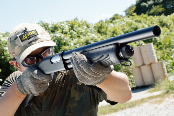 ショットシェル内にはBB弾を1〜3発まで装填でき、ショットガンらしい撃ち味が楽しめるのも魅力のひとつ。ストックに着脱式ガスタンクを内蔵することで連射してもガス圧の低下が起きにくく安定した射撃を楽しめる。3ガンマッチの影響を受けてリロードアクションを楽しみたい方にライブシェル式のM870は貴重な存在である。