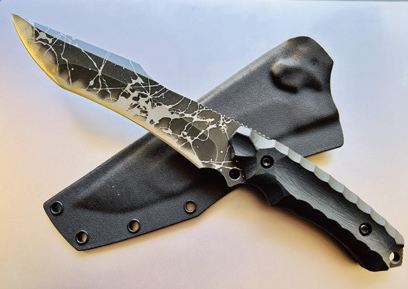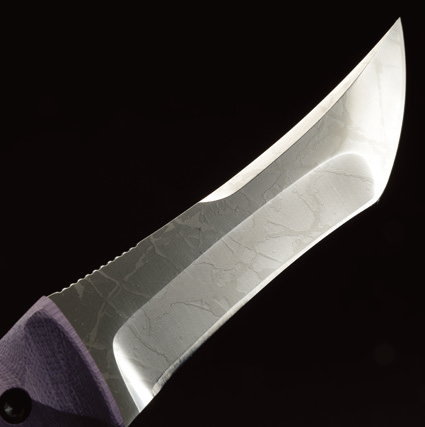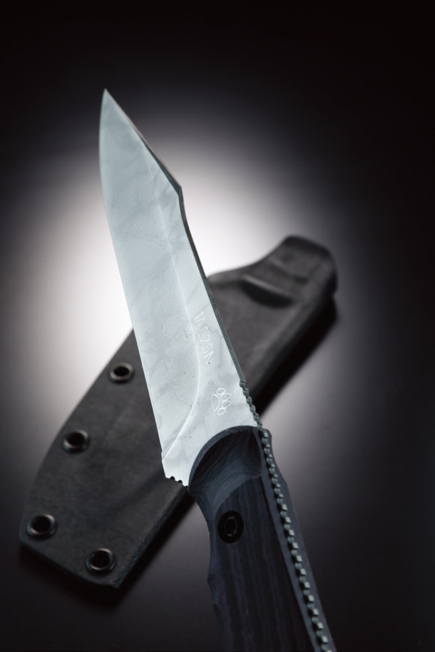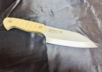 ウィリアム・スカーゲルというカスタムナイフのパイオニア的存在の作品をオマージュしながらもオリジナリティのあるシルエット。さらに鎬の削りなどのディテールにも気が配られ、見て手に持って楽しめる作品となっている。