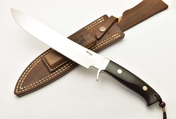 ヒルトがアクセントになる流麓なデザインに加え、剣舵的な使い方を想定した重量バランス、砥石を内蔵したシースなど、実用にも目配りをしている良作だ。