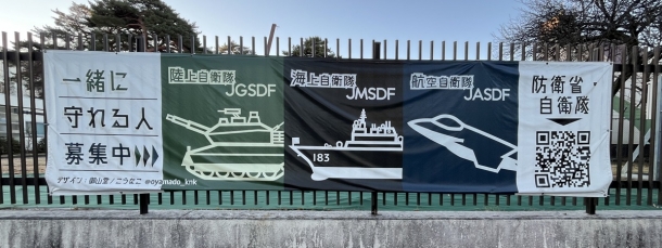 自衛官募集のための横断幕で、この横断幕には防衛省自衛隊の自衛官募集のページにアクセスができるQRコードが掲載されています。
