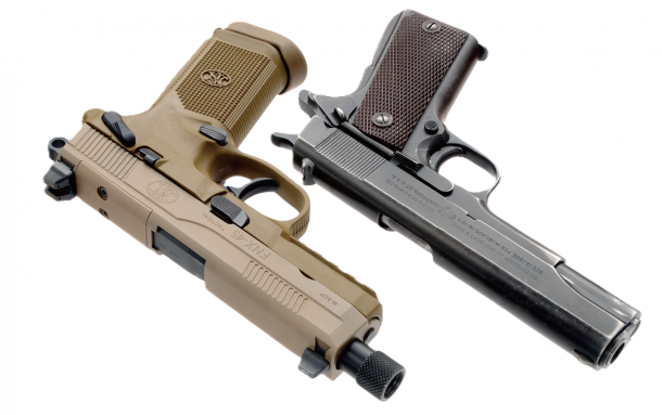 1970年代末、アメリカ軍も老朽化したM1911A1を9×19mmを使用する新型ピストルへ更新する動きが始まった。アメリカ軍にM1911A1が納入されたのは1945年が最後で、それ以降は一挺も新規納入されていない。新型9mm ピストルの選定は1985年にベレッタ92B-F(92F)をM9として選定する形で決着し、M1911およびM1911A1は74年間に及ぶアメリカ軍サービスピストルの座を降りた。それは45ACPカートリッジも同様だ。