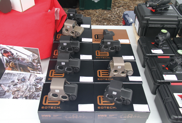 EO-TECHの製品も数多く陳列されていた。ホログラフィックサイトを初めて覗いた参加者は、性能の高さに驚きを隠せなかった
