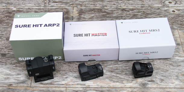 光学機器部門の景品として写真右よりSURE HIT ARP2、SURE HIT MASTER、SURE HIT MRS2 3MOAが提供された