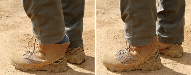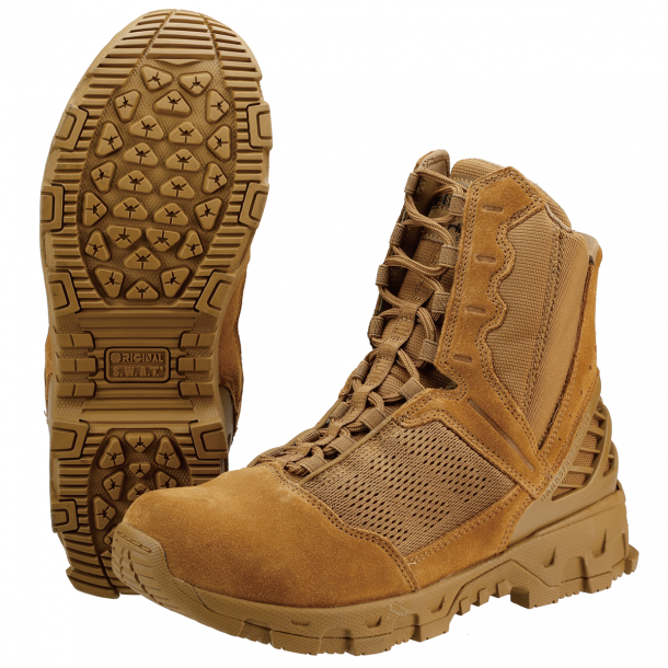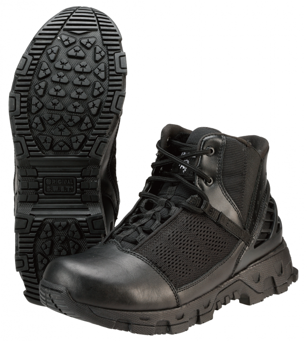 オリジナルS.W.A.T.の「アルファフリーダム」は一見するとフツーのタクティカルブーツのようだが、シューレースを結んだりほどいたり、サイドジップを開閉することなくハンズフリーで屈まずに脱ぎ履きできるシステムを採用している。足をしっかりホールドしつつ、驚くほどスムーズかつ素早く脱ぎ履きできる。タクティカルブーツとしてのスペックもしっかり備わっており、サバイバルゲームからアウトドアまで幅広く使える。