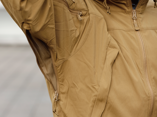 同社の傑作ソフトシェルジャケットTROOPERに採用されている軽量で優れた伸縮性を持つナイロン素材StormStretchを継承しつつ各部をアップデート。身ごろはゆったりめなので厚手のフリースジャケットや中綿入りのジャケットの上からでも着用できる。1着持っていると様々なシチュエーションで活用できる。