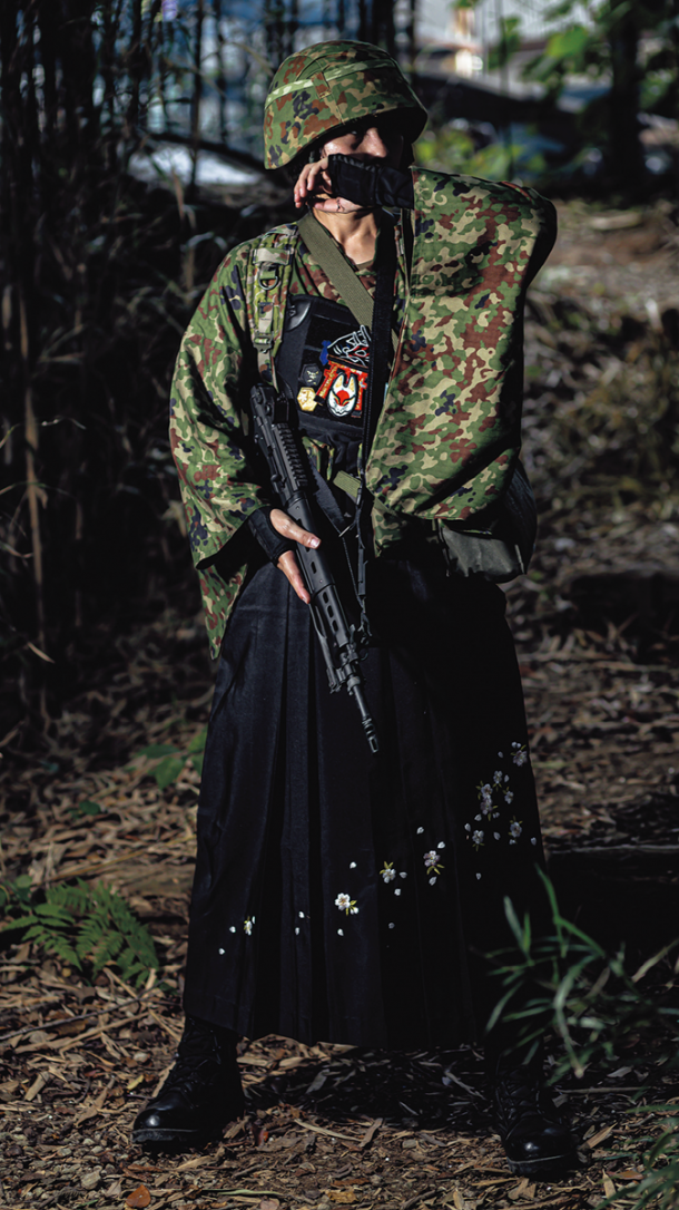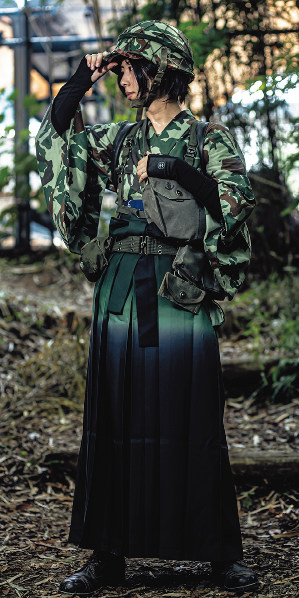 「和装とミリタリーを融合ができれば」という思いから「日本において、現代に至るまで和服が一般的な服装のままだったら、自衛隊装備はこんな感じだったのでは」という想定のもとに作り上げたスタイリングだ。