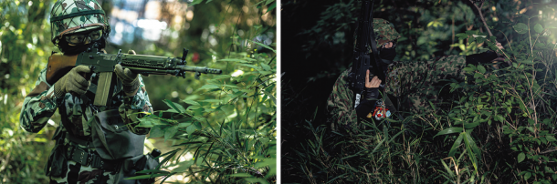 架空スタイリングだが、実際に使っていたらと想定、実用性を考えて装備を組んでいる。自衛隊括りのゲームイベントなどで着用するための新旧のリアルな自衛隊スタイリングも行なっている。