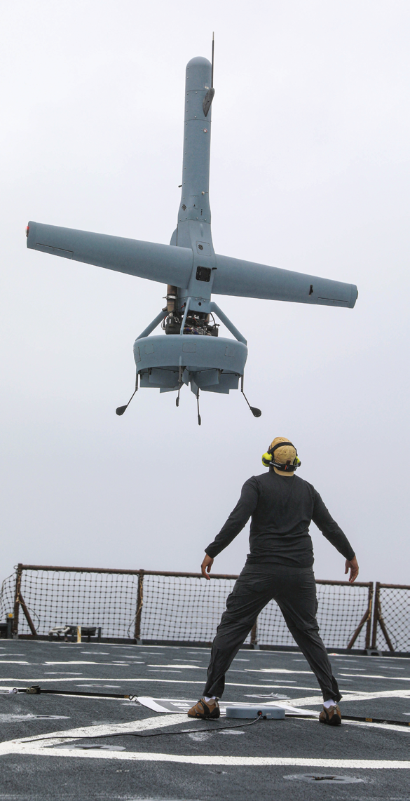 この海自初のOPVは、パトロールに特化したため、武装は30㎜機関砲一門のみ。対艦・対空ミサイルの類は搭載しないという大胆な武器構成とした。後部はヘリ甲板となっているが、こちらでは主として垂直離着陸型無人機V-BATを運用する計画だ。なお、このV-BATは、「もがみ」型でも運用される。