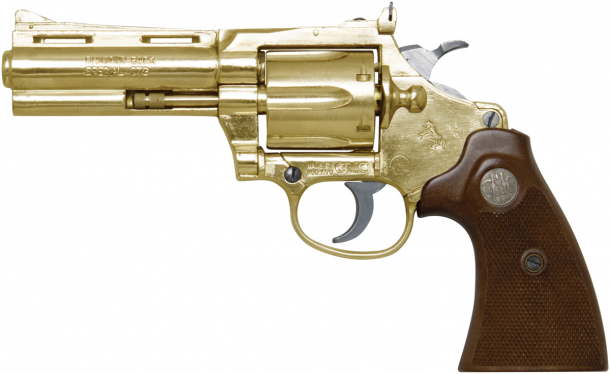 ※拳銃型の金属製モデルガンは、1971年の第一次モデルガン法規制(改正銃刀法)以降に販売されためっきモデルであっても、経年変化等によって金色が取れると銀色と判断されて規制の対象となることがあります。その場合は黄色や白色、または金色の塗料を塗るなどの処置が必要です。