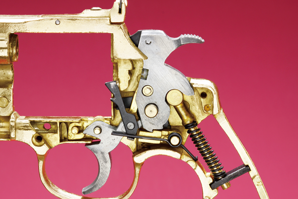 実銃のダブルアクション・モダンリボルバーは、スムーズに作動させるには高い精度が必要だとされる。そのため当初は、モデルガンでそのまま再現するのは不可能とされていた。それをうまく解決したのがMGC の小林太三さんだった。