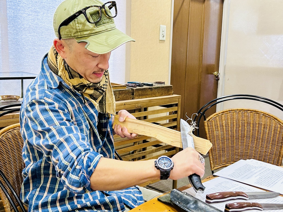 そうなった時に、岐阜県関市で生まれ育った私が扱うべきアイテムは刃物だな、と自然に決まりました。さらにターゲットをナイフに絞りました。というのも、僕、釣りやキャンプから野宿にいたるまでアウトドア全般を、子どもの頃から父にひととおり教わってきていたんです。アウトドアで使う道具として、当然ナイフにも親しんでいたので、自分なりに魅力を伝えていけるんじゃないか、と。そう考えたんです。