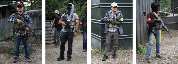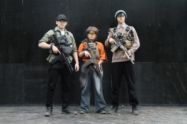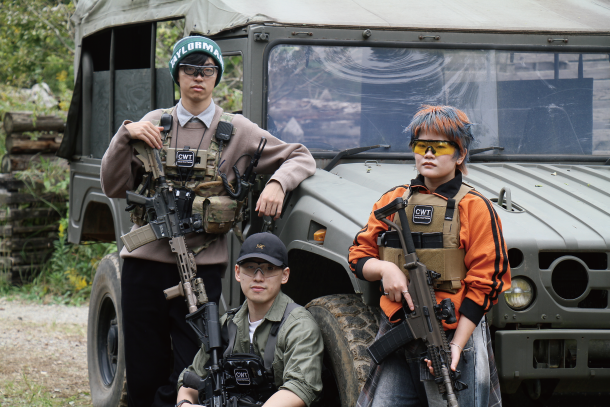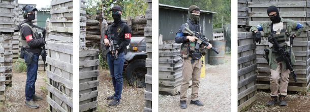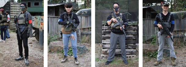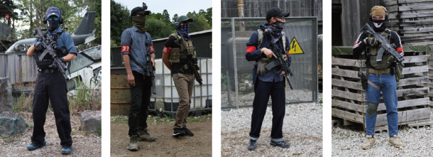 写真左からCWTを主催するマサクロ(X:@MSKR_airsoft)さん、らっこ(X:@39Racko)さん、TAIGA(X:@TAIGA7331)さんの3人のスタイリング。毎回テーマに即したスタイリングに身を纏いつつも、そこには進化と変化がある。数多くのゲームイベントに参加し、国内外の情報に触れて学ぶことを継続する彼らは、イベントとともに進化していく。そのスタイリングは多くの人に影響を与えている