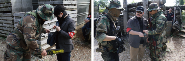 市長や重要人物はノンプレイヤーキャラクターだが、報道カメラマンや工事現場の作業員は参加者である。ゲームキャラクターの選択肢の中に非武装の『市民』があるので、攻撃や守備側だけでなく、地元住民としてゲームにも参加できるのだ