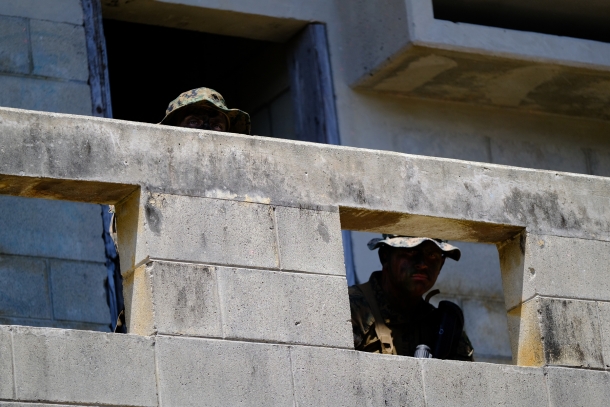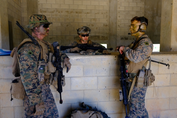 アメリカ軍において市街地作戦はMOUT(Military Operations on Urbanized Terrain)と呼ばれ、アメリカ海兵隊は近年の対テロ戦争において数々の市街地戦闘に参加してきたことでも知られている。遮蔽物の多い市街地においては、敵がどこに潜んでいるのか分かりにくく近接戦闘になりがちなので、ひとつの建物を制圧するだけでも大きな犠牲を伴う場合がある。自ら血を流してMOUTの経験を積んできた彼らだからこそ、この訓練もひときわ真剣味を感じさせるものとなっていた。