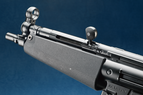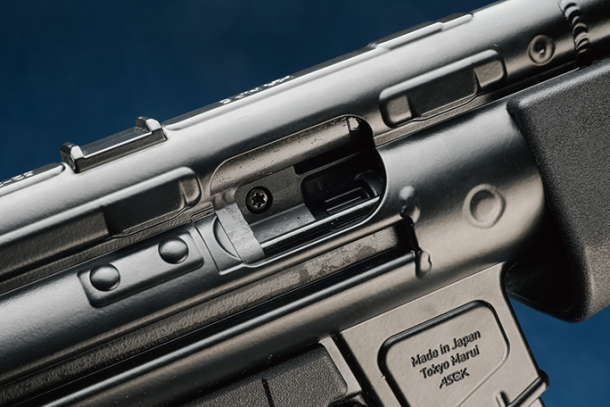 次世代電動ガンのためリコイルショックはガスブローバックガン並みであり、撃ち応えも充分に楽しむことができる。コッキングハンドルの基部は金属で構成されており、高い剛性を誇る。そのためMP5の代名詞でもある通称HKスラップも可能だ。マガジンチェンジごとに行なうHKスラップは雰囲気も抜群にいい。外観もコダワリ抜かれている。表面仕上げは本物のスチールパーツかのような風合いに塗装が施されており、高級感を感じとることができる。レシーバーを含む樹脂パーツ類はすべて本物の素材に近い強化ナイロン樹脂で成型している。現時点で発売されている電動ガンの到達点がここにある。