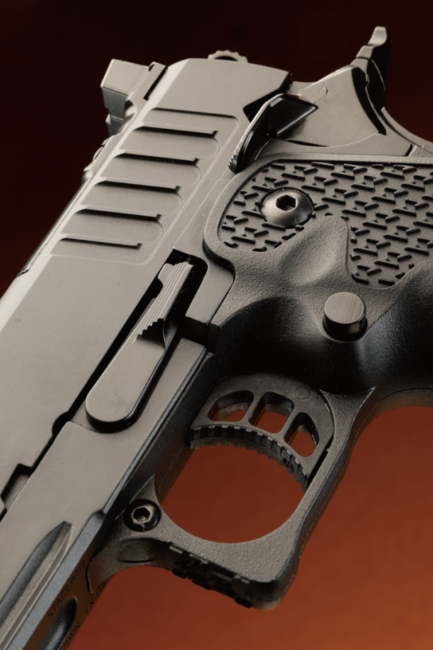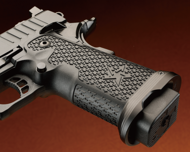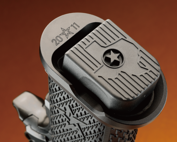 付属するマガジンにもコダワリが感じられ、バンパー底部には本拠地があるテキサス州をかたどったモールドが施されている。グリップの形状やテクスチャーはSTI時代からバージョンアップされており、より握りやすく、滑り止め効果が高いものになっている。最新のモディファイが存分に盛り込まれておりサバゲやシューティングマッチで使える性能を有している。