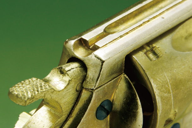 ※拳銃型の金属製モデルガンは、1971年の第一次モデルガン法規制(改正銃刀法)以降に販売されためっきモデルであっても、経年変化等によって金色が取れると銀色と判断されて規制の対象となることがあります。その場合は黄色や白色、または金色の塗料を塗るなどの処置が必要です。