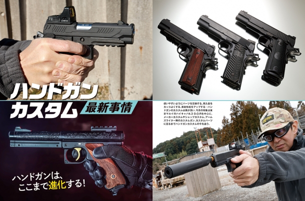 使いやすいようにパーツを交換する、見た目をカッコよくする、実射性能をアップする…ハンドガンのカスタムは奥が深い。今月の特集は東京マルイのハイキャパ4.3 D.O.Rを中心に、メーカーカスタムやショップカスタム、アームズライター陣のカスタムガン、カスタムパーツに至るまでハンドガンカスタムの今を追う。